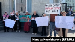 Кемпир-Абад ишине байланыштуу камакта жаткандардын жакындары сотту ачык өткөрүүнү талап кылып, 24-апрелде акция өткөрүштү.