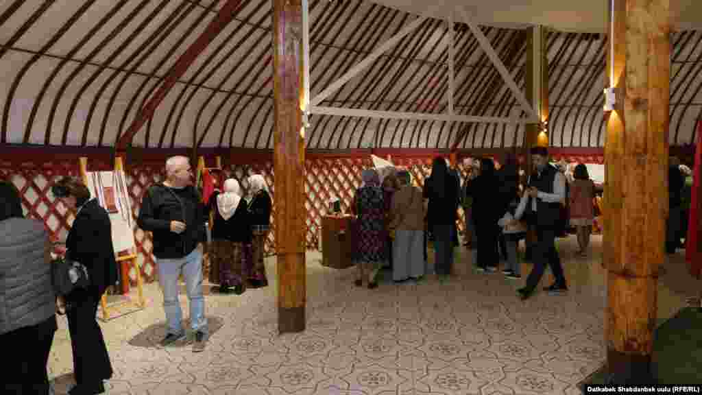 Вандык кыргыздардын кийимдеринин көргөзмөсүнө келгендер.