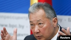 Кызматынан кулатылган Курманбек Бакиев бүгүн Минскиде маалымат жыйынын өткөрүп, президент катары Кыргызстанга кайтып баруу планы жок экенин билдирди. Ошол эле маалда кызматтан кеткени тууралуу анын арызын парламент бекитмейинче, ал дале мыйзамдуу президент болуп кала берерин айтты.
