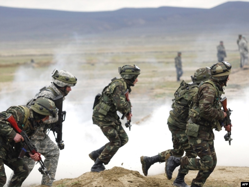 Азребайжан жана АКШ жоокерлери НАТОнун бирлегелешкен машыгуусунда. Бакунун чети. 24-апрель 2009