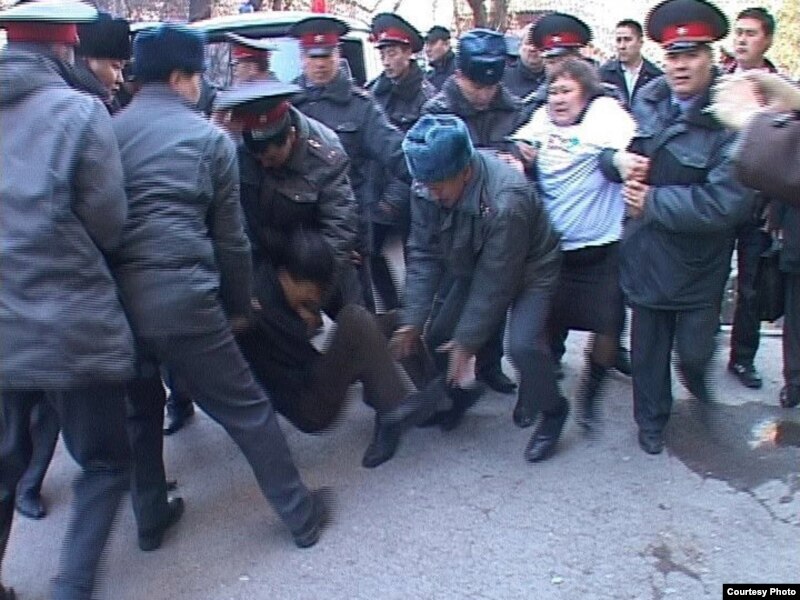 Бишкектеги Улуттук филармониянын жанына келишкен “Ак шумкар” партиясынын тарапкерлерин саат эртең мененки тогуздарда даяр турган милиция кызматкерлери дароо эле күчтөп автобуска салып, Биринчи май райондук ички иштер бөлүмүнө алып барышты. Кармалган жыйырма чакты “Ак шумкарчылардын” арасында укук коргоочу Токтайым Үмөталиева, партия төрагасы Темир Сариев да бар.