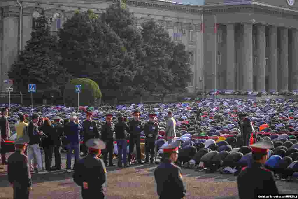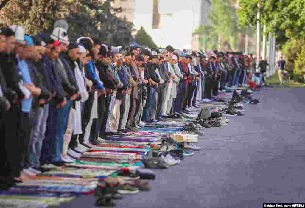 Бүгүн,  2-майда Кыргызстанда мусулмандардын Орозо айт майрамы белгиленип жатат. Майрамдык айт намазы Бишкектеги Эски аянтта окулду.  Ага болжол менен элүү миңдей киши чогулду. Президент Садыр Жапаров баштаган аткаминерлер да майрамдык жөрөлгөгө катышышты. Коомдук коопсуздукка милиция кызматкерлери көз салып турушту.