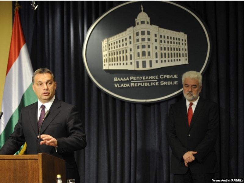 Венгриянын премьер-министри Виктор Орбан(солдо) жана Сербиянын өкмөт башчысы Мирко Цветкович(оңдо). Белград, 26-ноябрь 2010.