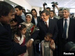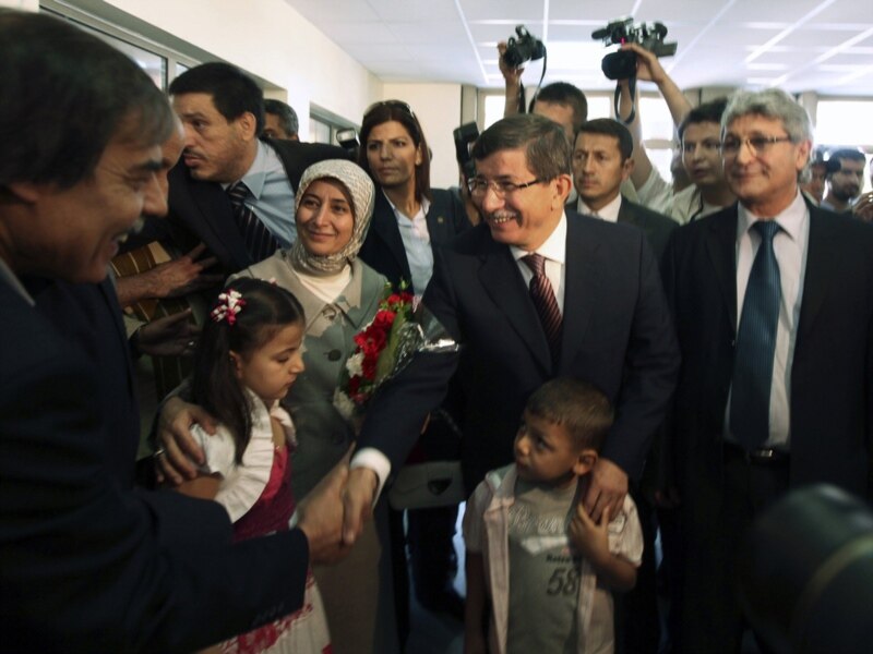 Түркиянын тышкы иштер министри Ахмет Даудоглу(ортодо) ливиялык козголоңчулардын Улуттук өткөөл кеңешине визит менен барды. Бенгази шаары. 23-август 2011