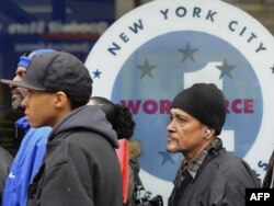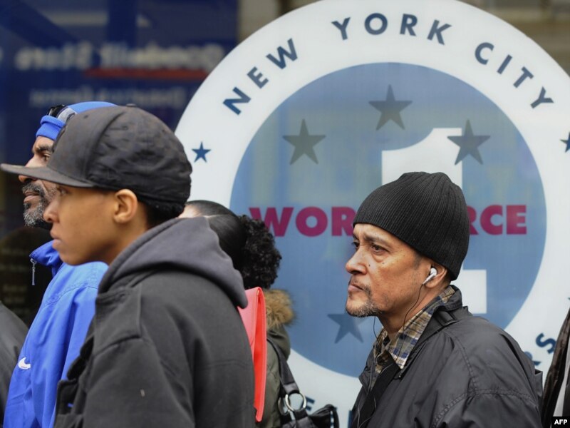 Эмгек министрлигинин жергиликтүү кеңсесинде жумуш сурап, арыз тапшырганы келген адамдар. Нью-Йорк. 6-май 2009