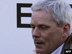 "ВикиЛикстин" негиздөөчүсү Жулиан Ассанж швейцариялык мурдакы банкир Рудольф Елмер берген жашыруун маалыматтары бар эки CDни Лондондогу маалымат жыйынында көрсөтүүдө. 2011-жылдын 17-январы.  AFP.